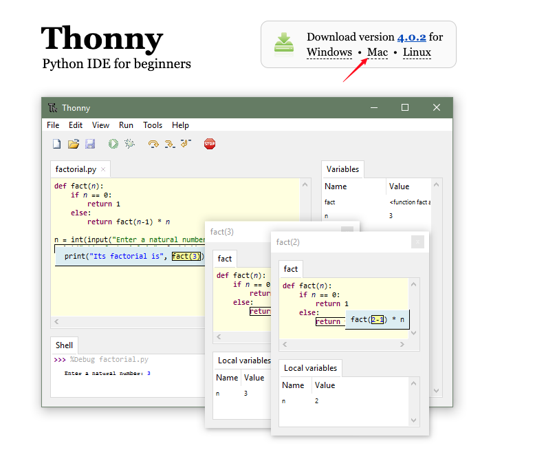 - To install the development software Thonny, download the Mac version from https://thonny.org/ :